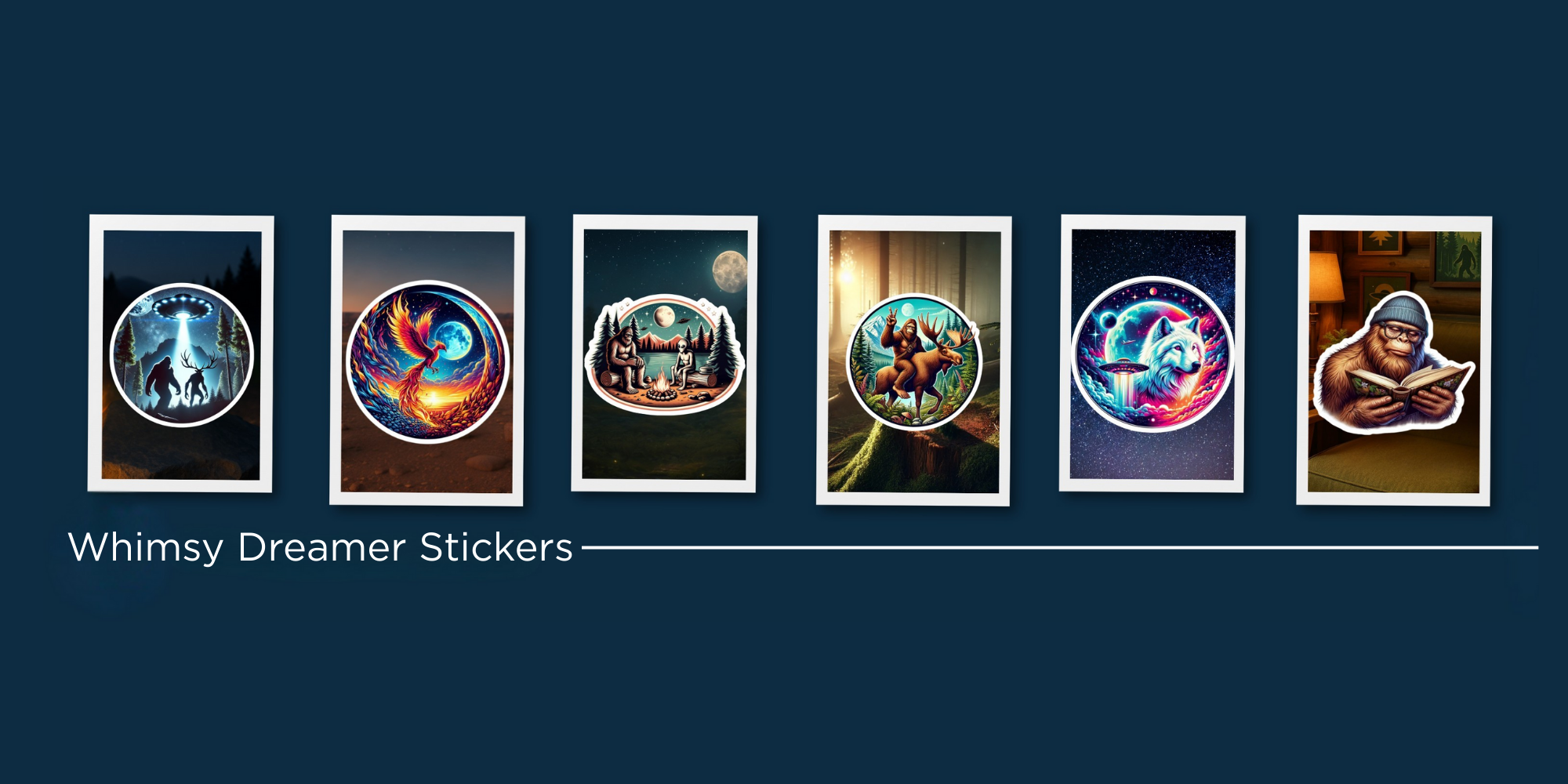 Cryptids, UFOs, and curious creatures—made into collectible stickers.